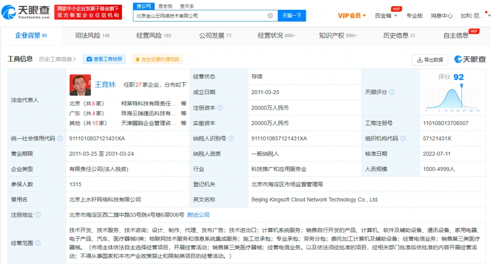 近日,北京金山云网络技术有限公司发生工商变更,金山软件集团高级副总裁刘伟卸任监事职位,同时新增主要人员彭博、杨丽静。该公司成立于2011年3月,法定代表人王育林,注册资本2亿人民币,由珠海金山云科技有限公司全资持股。