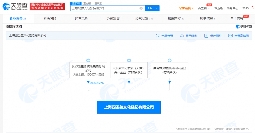 近日,张艺兴关联公司上海四圣兽文化经纪有限公司发生多项工商变更,新增共青城灵境投资合伙企业(有限合伙)为股东,同时公司经营范围新增动漫游戏开发、电竞音视频、数字衍生内容制作等,注册资本由约1113.58万人民币增至约1181.08万人民币。